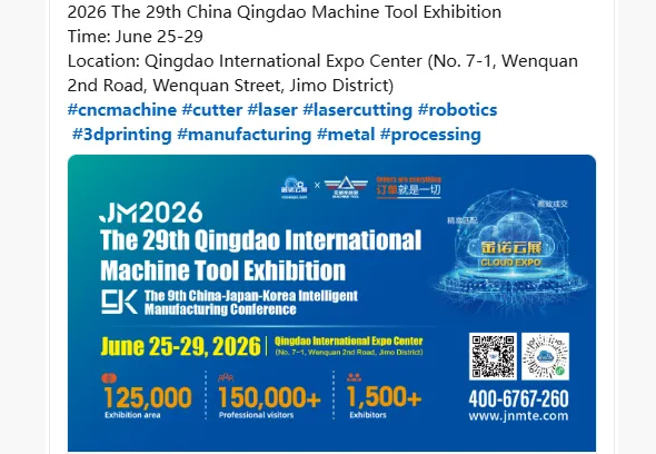 JM2026第29届青岛国际机床展览会携手国际优质机床工具品牌展商,全面提供智能化切削加工、金属成形、数字化工厂、柔性生产线与3C/汽车零部件/模具/医疗等行业加工应用解决方案。