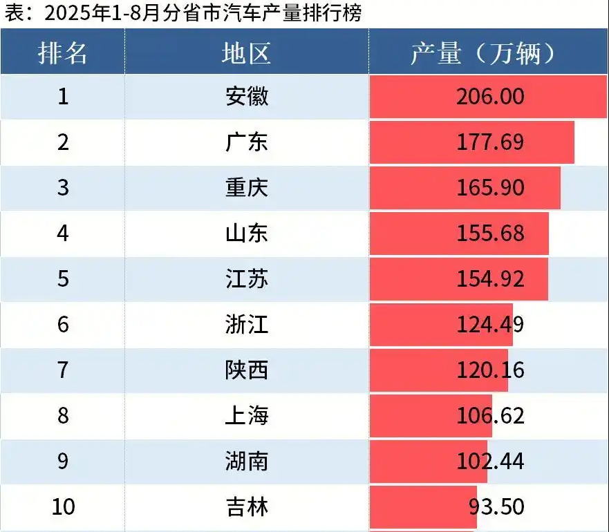 山东汽车产量首登第一|国家统计局:1-8月全国各省汽车产量出炉